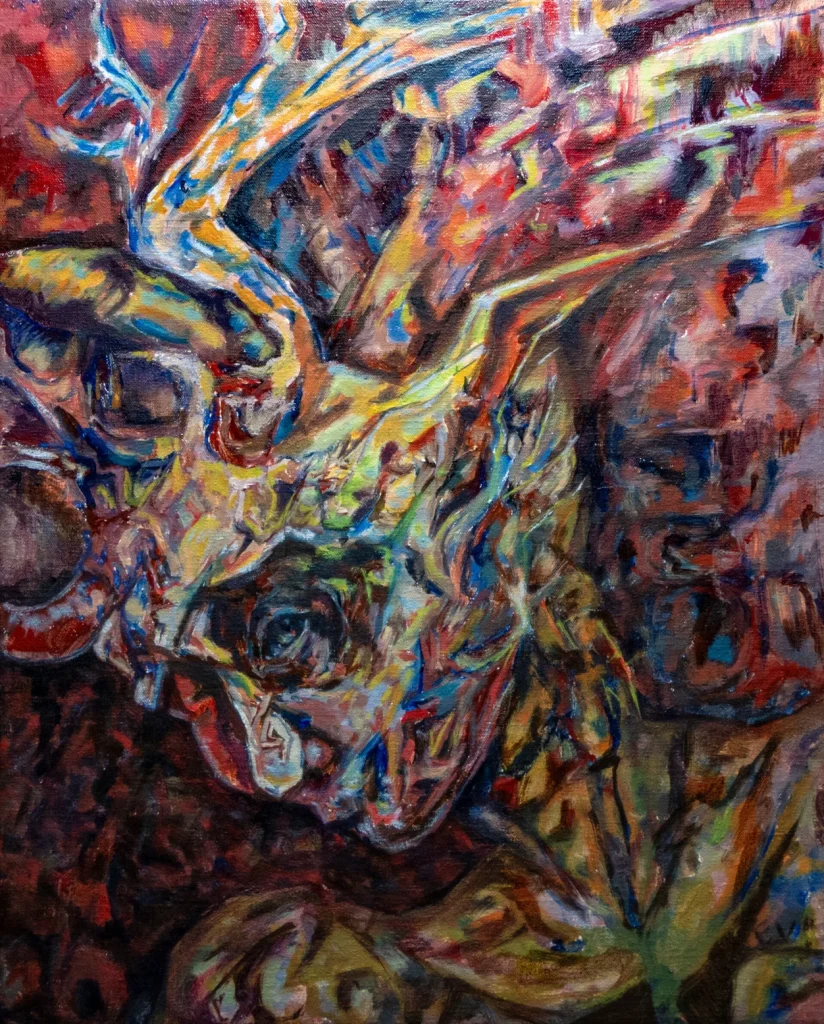 150 x 140 cm. Acrylic, oil and enamel paint on canvas